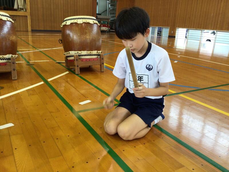 10月1日(日)に開催される「あつまれ芸術の森in鹿北」に向けて、6年生の伝統である、鹿北太鼓の練習がスタートしました。