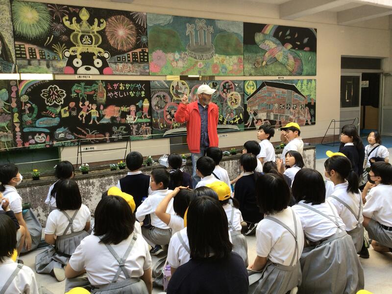 旧鶴城中学校で山鹿アートが開催されました。下田先生にご指導いただき完成した6年生の黒板アートを展示していただきました。