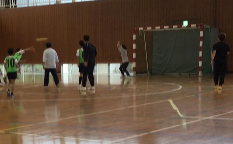 元オムロンハンドボール部の中島様にハンドボール教室で指導をしていただきました。