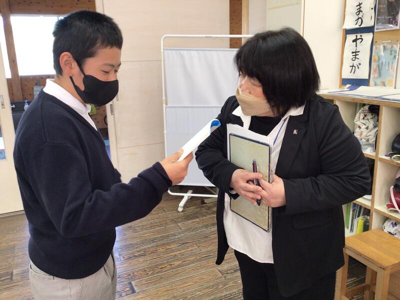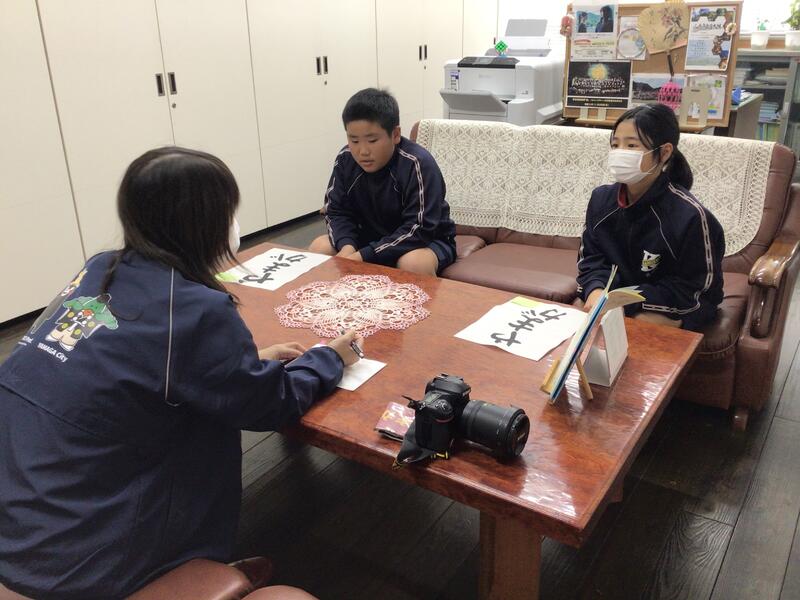 鹿北小学校の児童の習字の作品が広報山鹿に掲載されることになりました。記者の方から、たくさんの質問を受けた、6年生の2人。自分の思いをしっかりと語っていました。成長を頼もしく感じました。