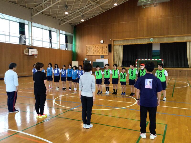 オムロンハンドボール部の皆様、中島様、鹿北中学生、鹿北小•中学校の先生方に指導していただき、いよいよ6年生の親善球技大会当日を迎えました。