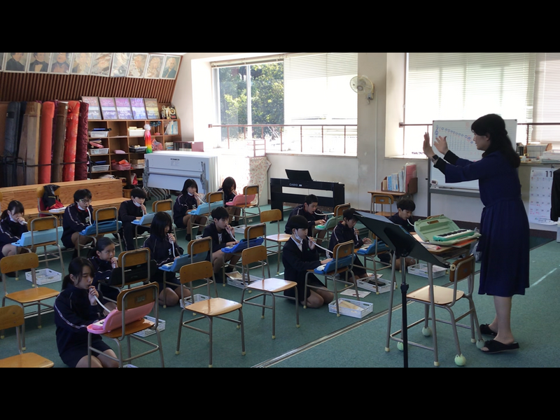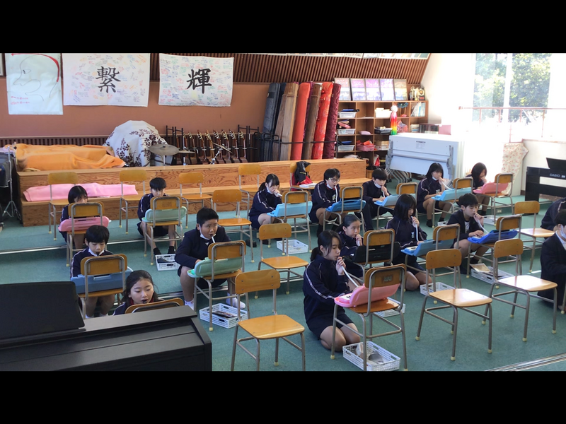 音楽の授業で「交響曲第5番ハ短調」にチャレンジしました。音楽の授業は、中学校の原口先生が教えてくださっています。