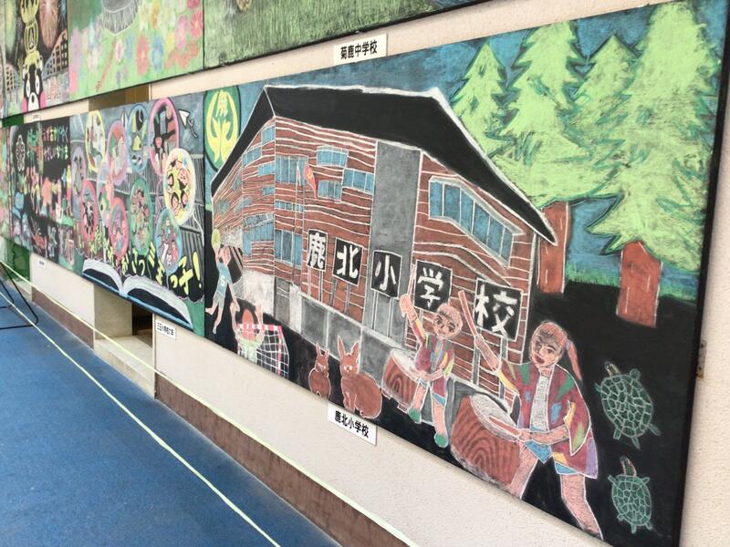 旧鶴城中学校で山鹿アートが開催されました。下田先生にご指導いただき完成した6年生の黒板アートを展示していただきました。