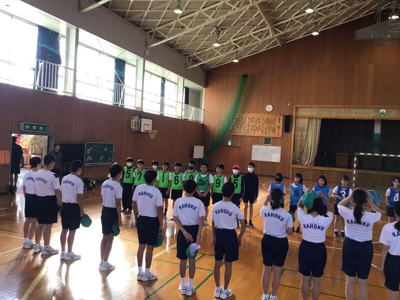 今日11月6日(月)昼休みに、鹿北小学校の先生方に試合形式でハンドボールの練習をしていただきました。「まだまだ子ども達には負けられない」先生方の思いと、「勝ってみたい!」6年生の思いがぶつかりました!
