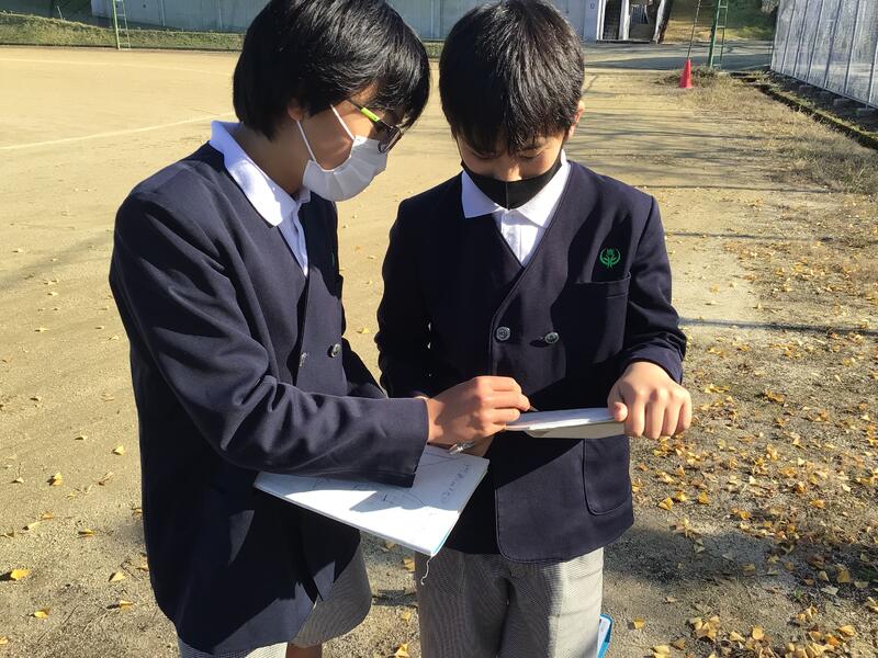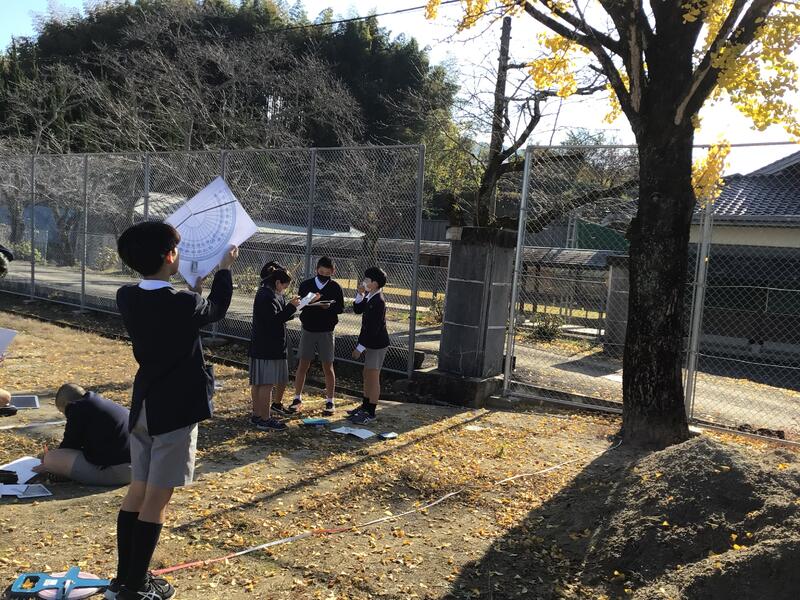 算数の時間に木の高さを求める問題にチャレンジしました!拡大•縮小の学びの集大成です。100分の1縮図をノートにかくことを通して、高さを求めます。