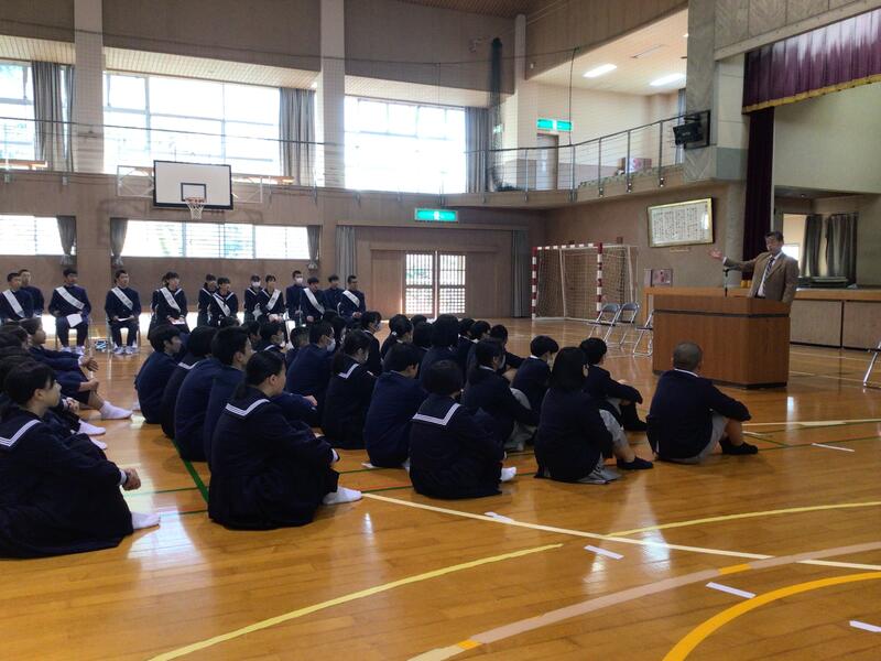 校長先生から、優勝をお祝いしていただきました。また、この先の学校生活の過ごし方の大切さをお話ししていただきました。ありがとうございました。