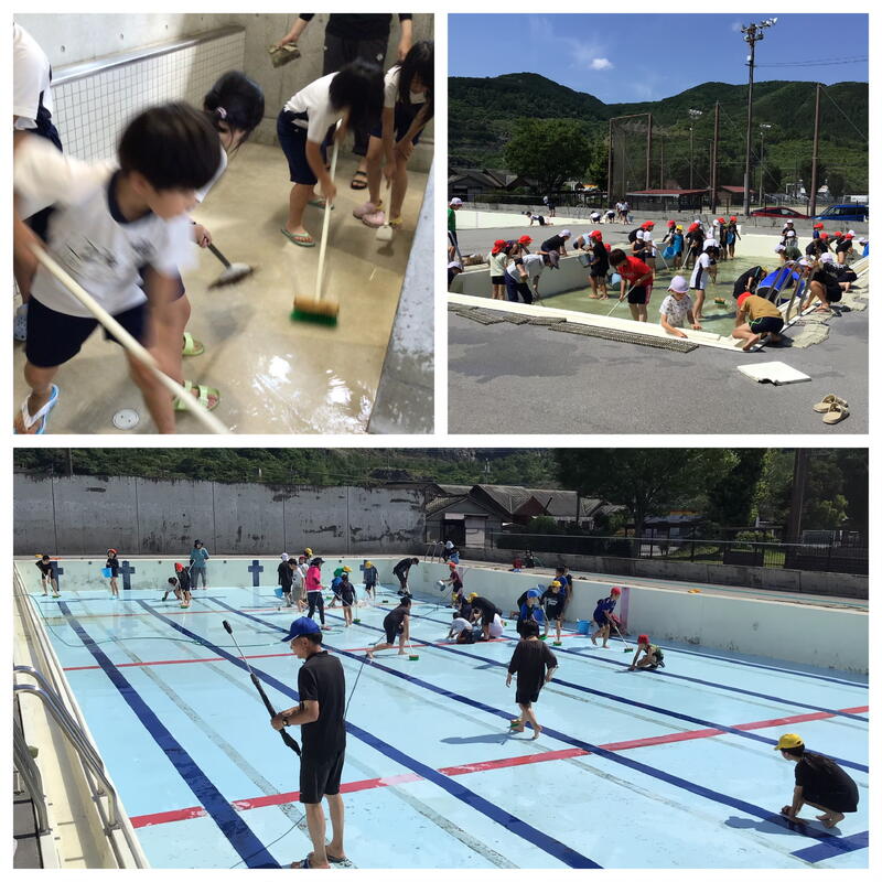 6月3日(月)プール掃除を行いました。1年生から6年生まで全学年で分担して、足洗い場、トイレ、更衣室、プールサイド、小プール、大プールを一生懸命磨いてくれました。プールがピカピカになると子どもたちの笑顔も輝いていました。今年もたくさん泳いでほしいです。
