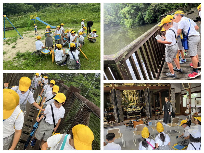 3年生は社会で鹿北町の様子を学習しています。学校の周りにある建物や交通、土地の利用の仕方などを調べています。この時期は雨も多く、予定が変更になることもありますが、待ちに待ったおでかけの時間をみんな楽しみにしています。たくさんの発見をして帰ってくると、どんなものを見てきたか、嬉しそうに話してくれる3年生です。