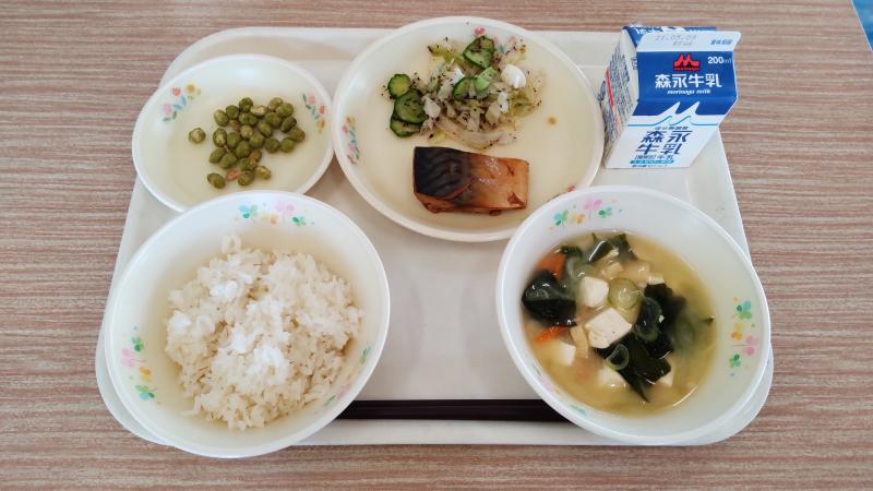 麦ご飯 豆腐とわかめのみそ汁 さばのソース煮
