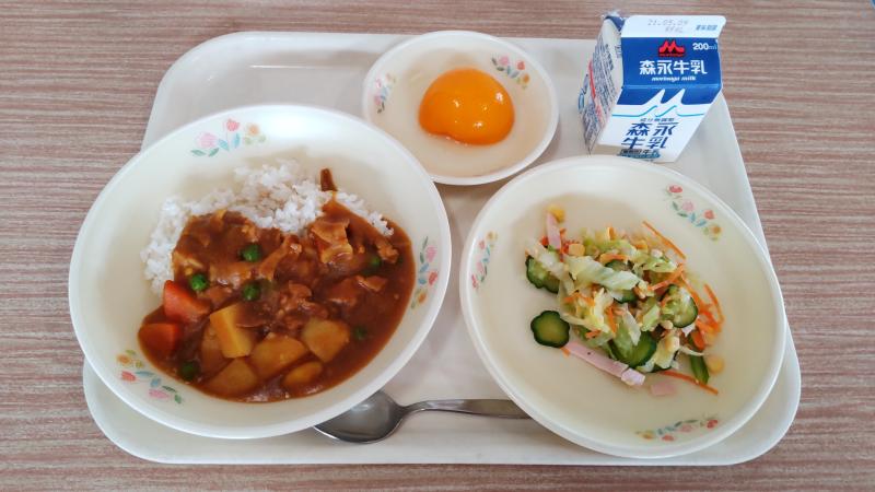 今日は子どもたちに人気のあるカレーライスでした。カレーライスはすぐに食べ終わっても、サラダが苦手で食が進まない子どももいました。ご飯にかけて食べる料理は食が進みますが、どんなものと組み合わせて食べていますか?トンカツやコロッケ、エビフライなどと組み合わせるとおいしいですが、栄養バランスを考えると、ぜひサラダや果物と組み合わせて食べてほしいと思います。また、カレーライスはカロリーも高いので、量を考えて食べるとよいでしょう。食べ過ぎが気になる人は、先に飲み物を飲んだり、サラダを食べることをおすすめします。どんな食べ物もバランスが大切ですね。