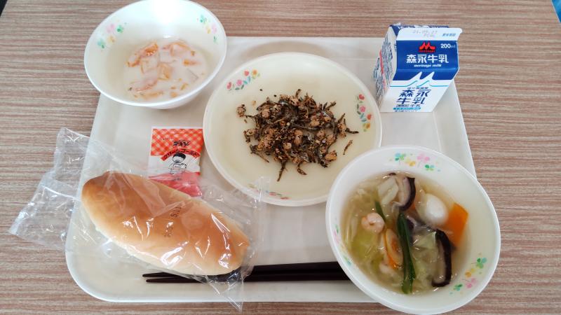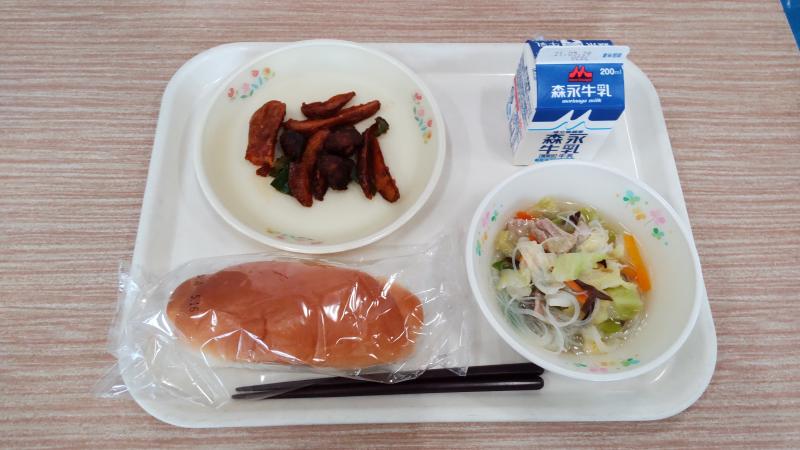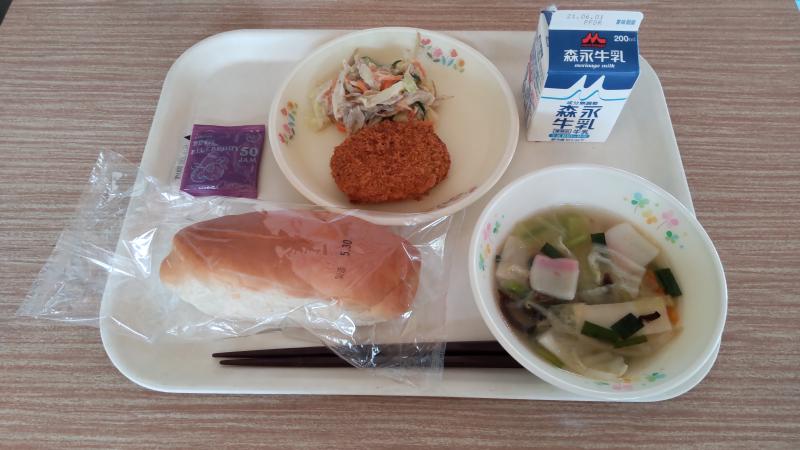 コッペパン 牛乳 ジュリアンスープ お茶ゼリー