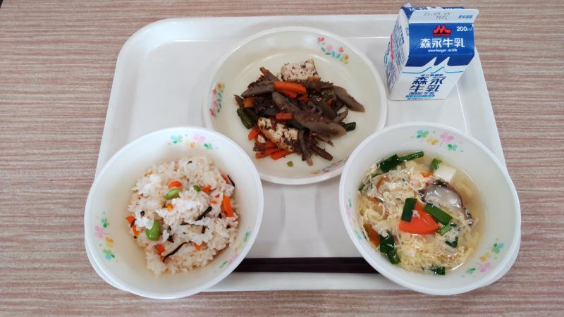 今日は本当にたくさんのごぼうと人参でした。調理員さんは、洗っても洗っても切っても切っても終わらなくて大変だったと思います。1年生から「今日の人参は何本ありましたか?」と質問され、がんばりがいがあるなあと嬉しく思いました。コロナ禍なので、どのクラスも黙々と食べていますが、カウンター越しに「今日の~がおいしかったです。」と声をかけてくれる児童もいます。グループで楽しく会話しながら食べられる日が待ち遠しいですが、これからも楽しみにしてもらえるよう頑張りたいと思います。