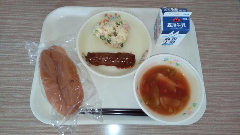 ミネストローネ ポテトサラダ 牛乳