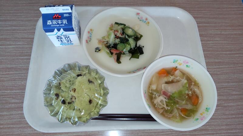 抹茶蒸しパン ラビオリスープ