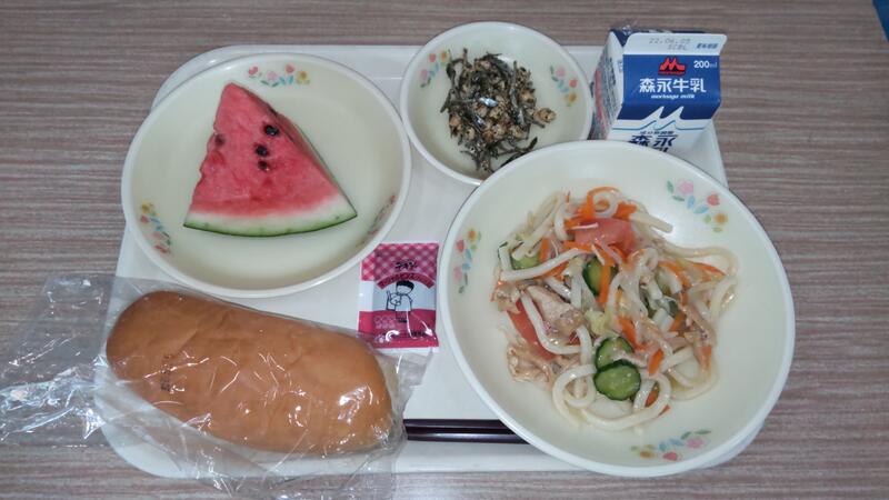 一昨日1年生がいただいたスイカを早速給食に出させていただきました。この頃の食材の高騰もあって、今月はデザートを控えていたので、とてもありがたかったです。「わあ、スイカだ !」と喜んで運んでいました。果物はおいしいだけでなく、食卓を明るくしてくれるので、家でも一日一回は出すようにしています。ビタミンCも効率よく摂れます。体も心も元気にしてくれる旬の果物をたくさん食べましょう。