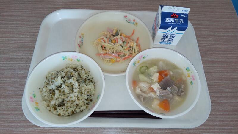 ごぼうとツナのサラダ お茶ゼリー 牛乳