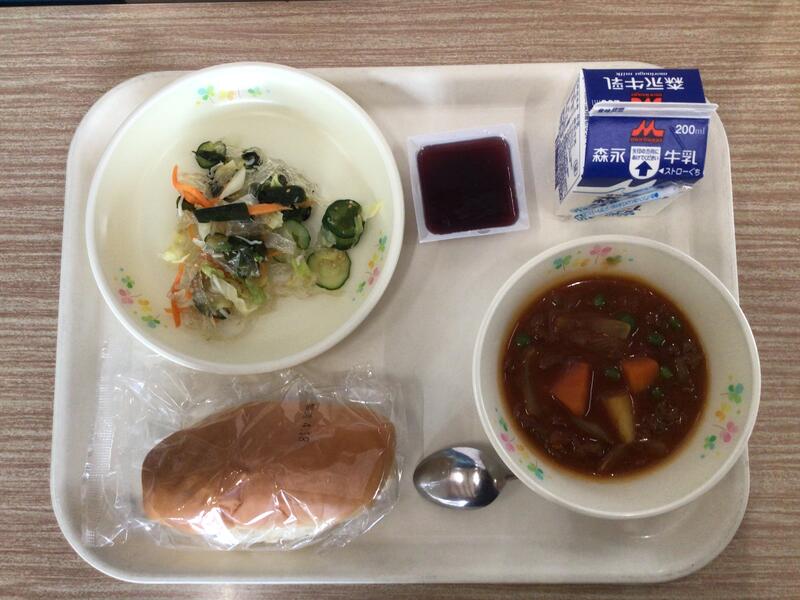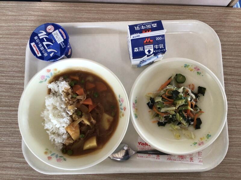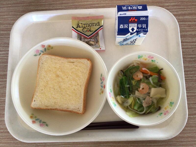 今日は1年生の初めての給食でしたが、みんな残さず食べ、残さいはゼロでした。