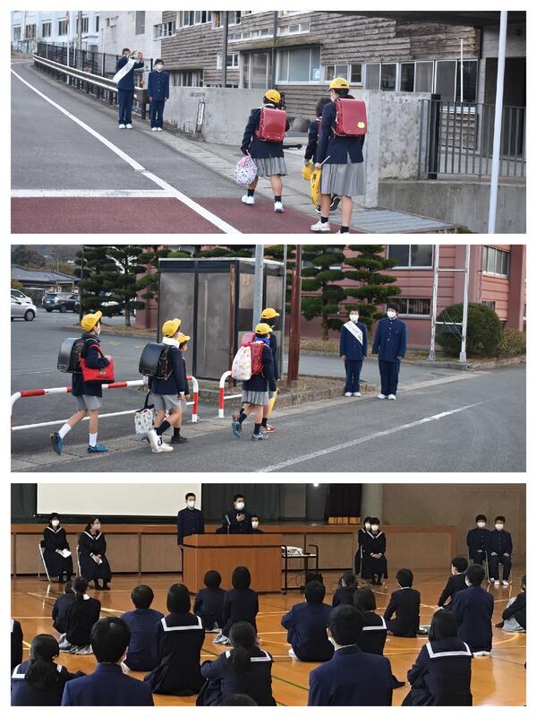 今日の朝の活動は持久走。体育安全委員会のかけ声で一斉に走り出します。白い息を弾ませながらみんな走る走る。終わったころには、みんな体も心もポッカポカ。丸まっていた自分の背中もしゃんとまっすぐに伸びました。