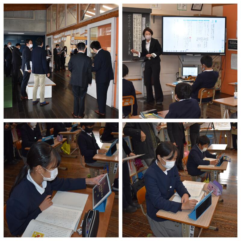 小学校は、5年生の国語の授業を公開しました。タブレットを自在に活用し、自分の考えを伝えている子どもたちの姿、ここぞという場面で効果的にタブレットを活用する担任の指導力に参観者から感嘆の声が上がっていました。