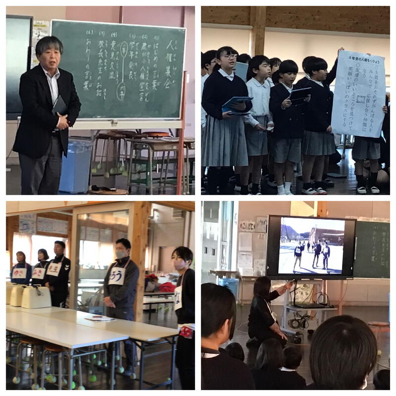 12月は人権について考える「人権旬間」を設定し、全ての学年で「人権学習」を行いました。そして12月11日に「人権集会」を行いました。各学年の人権宣言や学びの振り返りなどの発表を行った後に、先生たちによる「わたしのいもうと」の劇を動画で鑑賞し、間違っていることやおかしいと思うことなどを出し合いました。そして、どのようにすることが大切なのかについて考えました。次々と手を挙げて発表してくれる子どもたち。いじめられている人を見て、見ぬふりしている事のおかしさにも気づき、先生や家族、誰にでもいいから、そのことを伝えて、いじめをなくすために行動する仲間になることをみんなで確認しました。