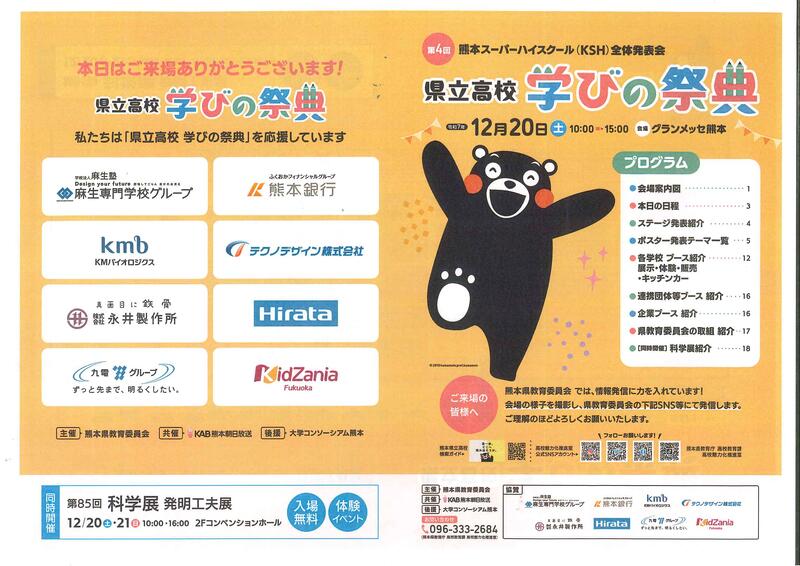 第4回熊本スーパーハイスクール(KSH)全体発表会「県立高校学びの祭典」『小学生・中学生の発表』大募集について