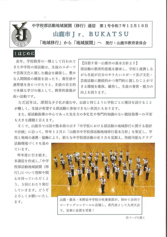 山鹿市教育委員会より中学校の部活動地域展開通信(第2号)が発行されています。是非、ご一読ください。