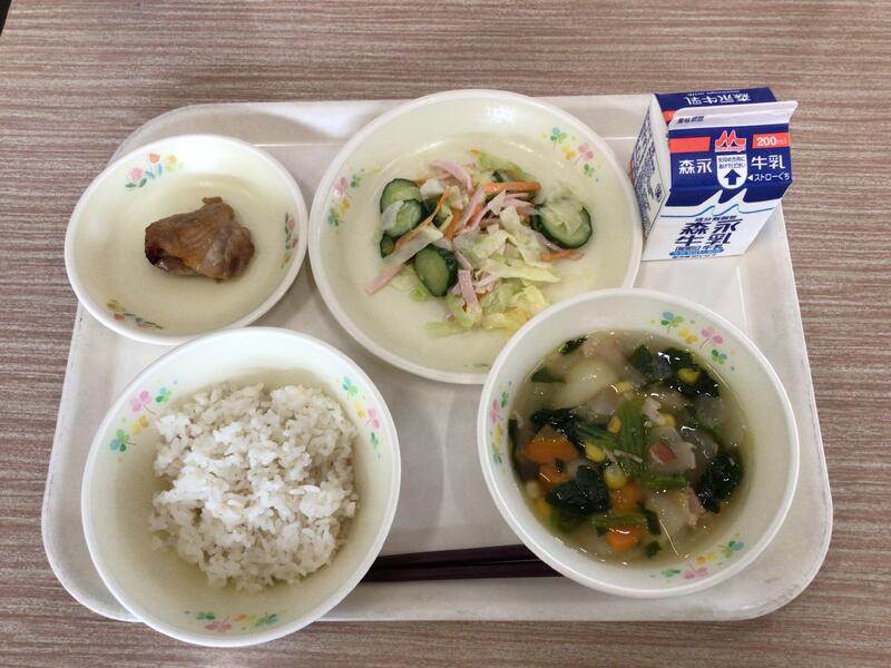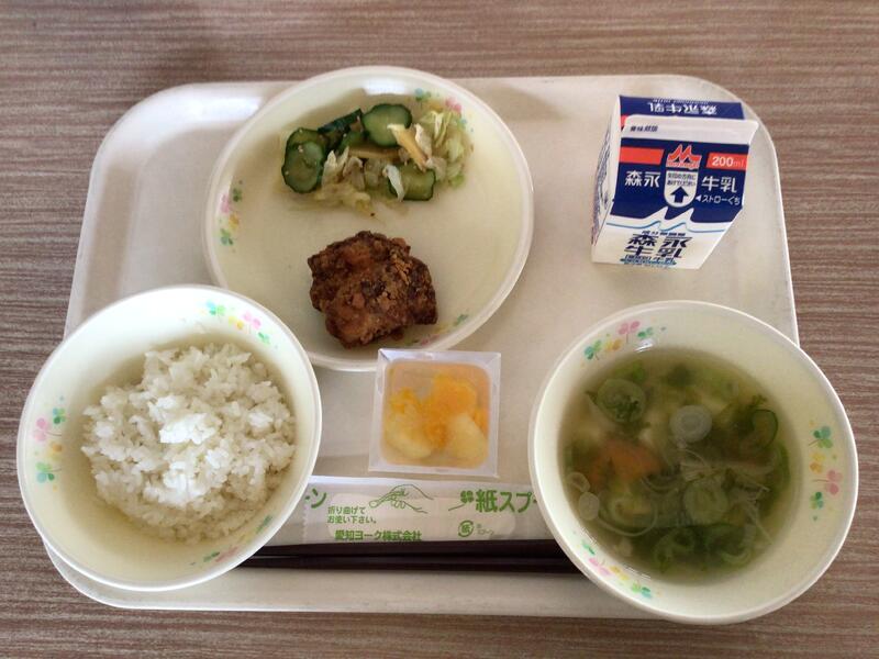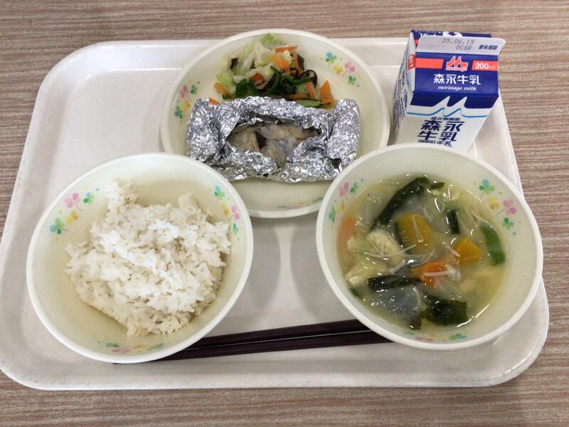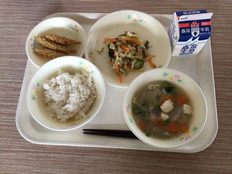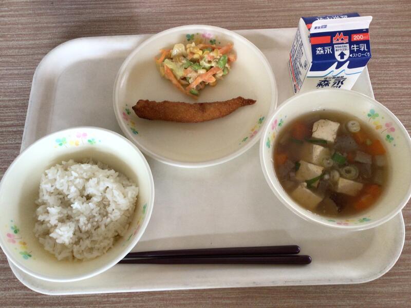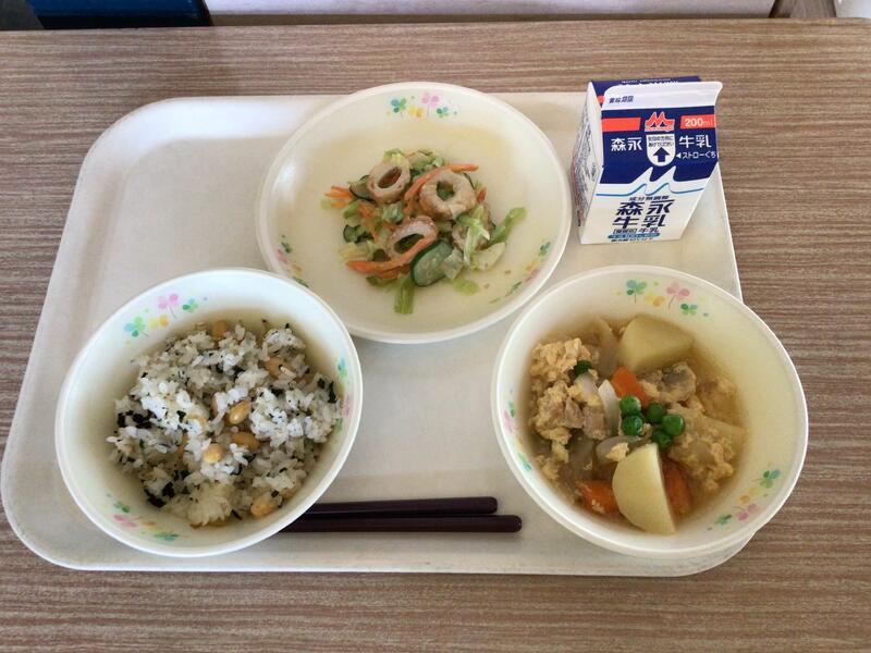 今日は筍ご飯です。筍とは、竹の若い芽のことです。地面からぐんぐん伸びる力が強く、1日に、1メートル近く伸びることがあります。食物繊維が多くおなかの調子を整えてくれるだけでなく、シャキシャキとした食感が特徴的な食材です。のっぺい汁もおいしかったです。ししゃもフライもおいしかったです。