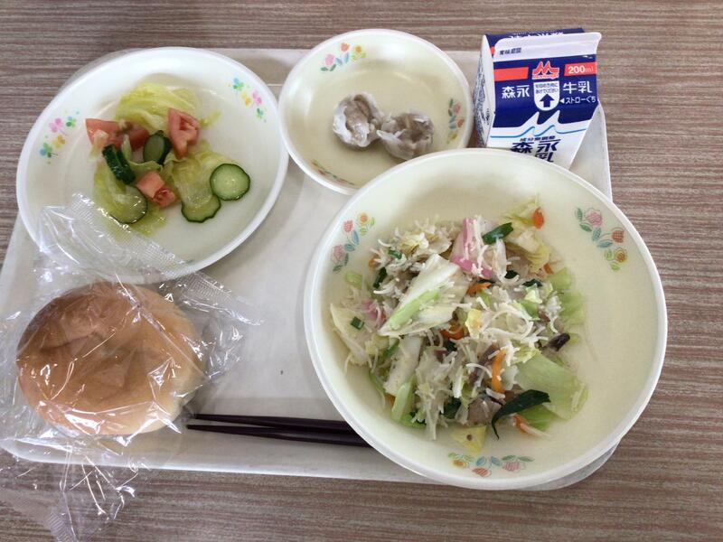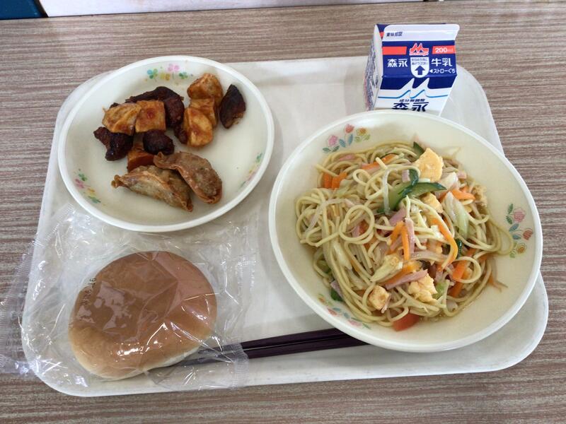 牛乳、コッペパン、八宝菜、大学芋、チーズ
