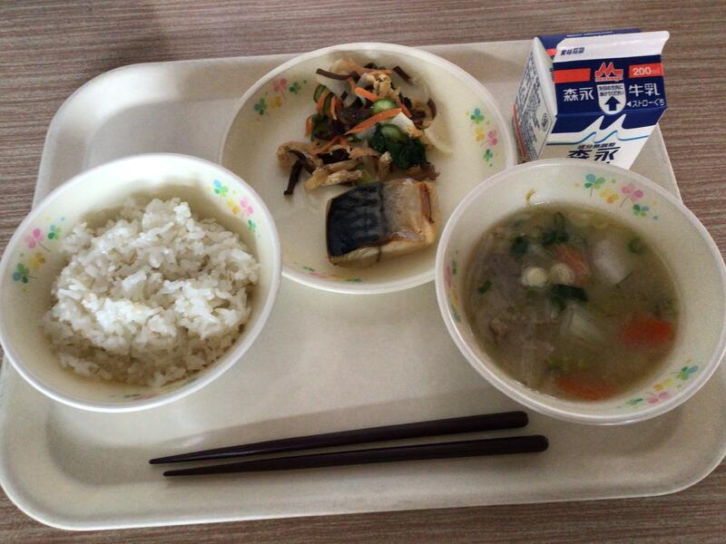今日は、塩鯖です。さばには、体を作るタンパク質が豊富に含まれています。さらにDHAやEPAという油が多く、これらは脳の働きを助けたり、血液をさらさらにする働きがあります。脂がのった塩鯖はおいしいですね。甘酒入りの豚汁も、まろやかでおいしかったです。ご家庭でも試してみられてはいかがでしょうか。