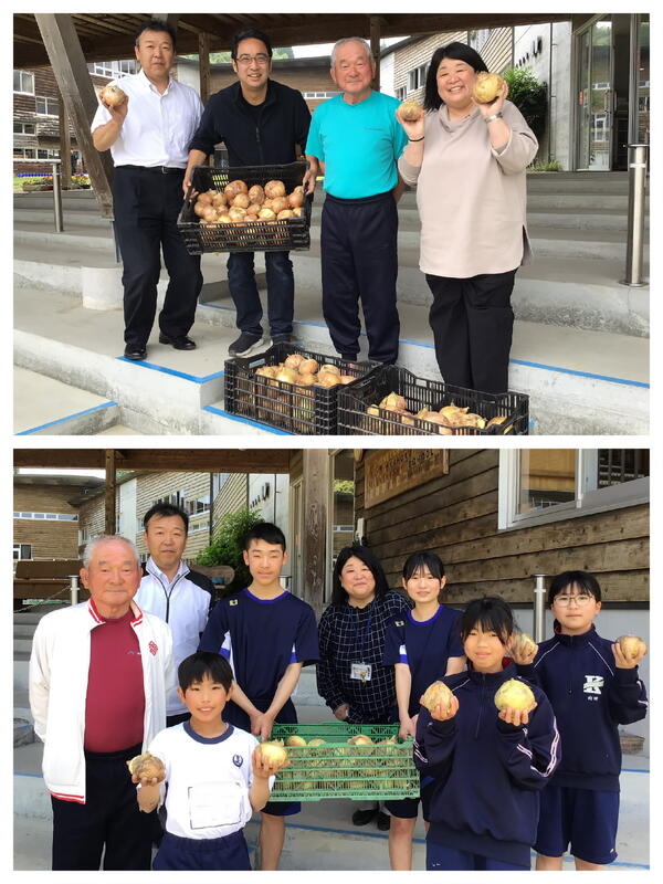 元田工務店様を通じて、山鹿市の立山農園様より、給食食材にとカボチャをいただきました。この時期、カボチャはとってもおいしいですよね。今日は、元田工務店の関口様と山鹿市教育委員会の北本首席教育審議員が、カボチャを届けてくださいました。代表で受け取りましたが、とてもりっぱなカボチャでした。来週の献立表にある「カボチャサラダ」に使わせていただきます。いつも、たくさんの食材のご提供、ありがとうございます。