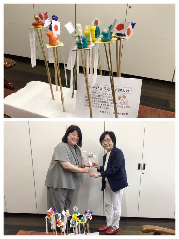 6年生のハンドボールリーダー4人が、校長室にやってきました。「ハンドボールの練習のことで相談に来ました。」ということで、手渡されたのがこの「挑戦状」です。11月21日(金)に、山鹿市小体連親善球技大会が行われます。毎年、6年生はこの大会に向けて、体育の時間以外にも昼休みに自主的に練習をしています。今年もよく頑張っています。5年生も一緒に頑張っています。さらに、Ⅱ期活動(小5・小6・中1で行う活動)でも、ハンドボール対決などを計画して中学1年生も一緒にハンドボールを実施しています。中学生との合同体育はとても楽しそうでもあります。このように一生懸命頑張っている6年生からの「挑戦状」です。もちろん、返事はYESです。毎年、この時期に、先生たちと試合をやって力をつけて、大会に臨んできました。しかし、挑戦状は初めてもらいました。この戦い、結果はどうなるのか、お楽しみに!!