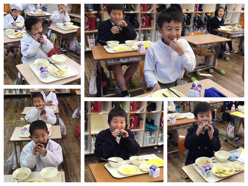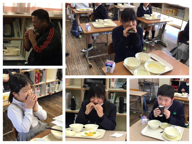 授業参観が中止となったため、日を改めて12月23日に5年生の「親子もちつき」を行いました。平日にもかかわらず、たくさんの保護者の皆様が参加してくださって、とってもおいしいおもちができました。何日も前から、餅つきに使う道具を洗って用意していた5年生。農業同志会の皆様にお世話になって、田植えと稲刈りをさせていただき、収穫した餅米でもちつきをしました。家庭科室で蒸して、ランチルームの外で餅つきと餅まるめをしました。つきたてのおいしいお餅、ごちそうさまでした!