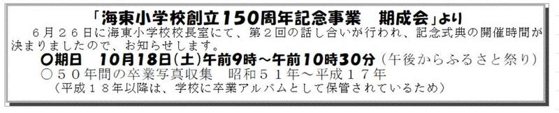 8月28日に行われました第4回の期成会により、先日の大雨による被害の甚大さを鑑み、以下のように記念行事の日程の延期が決定されましたことをお知らせします。