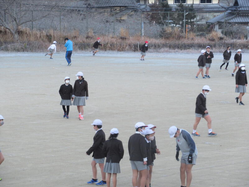 運動場は、霜で白くなりました。そんな中、子どもたちは、朝からみんなで「鬼ごっこ」を楽しんでいました。