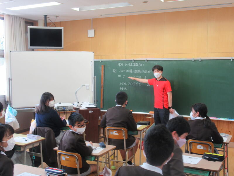 職員の指導力向上の一環として「交換授業」を実施しています。きょうは、4・5年生担任の長野先生が、6年生の算数の授業をされました。