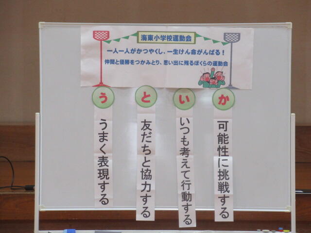 今日から運動会の練習が始まりました。初日は、結団式を行い、22日(日)の本番に向けて意欲を高めました。