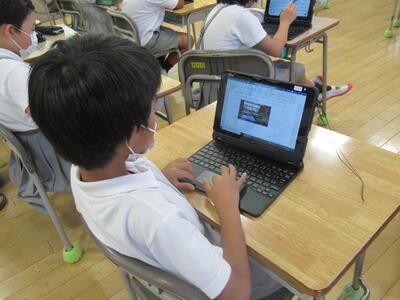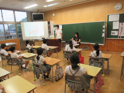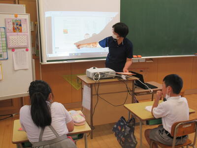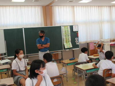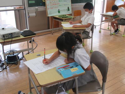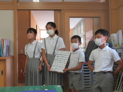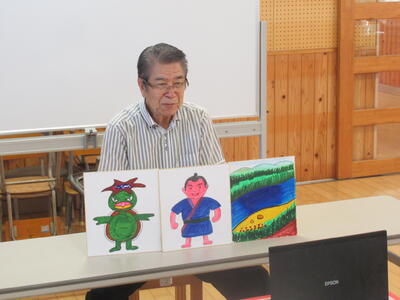 〇6月最後の日。朝からとても暑い日です。午前中校舎を巡回すると、それぞれの教室で、子どもたちが真剣に学習する姿が見られました。また、1時間目前の読書タイムでは、地域の方の読み聞かせがありました。海東に伝わる昔話を、手作りの紙芝居を使いながら読み聞かせしていただきました。
