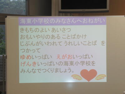 【心の絆を深める月間講話】校長先生が、オンラインで「ふわふわ言葉、ちくちく言葉」の絵本を読み聞かせされました。