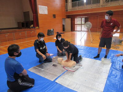 6月22日(水) 宇城広域連合南消防署小川分室から4名来ていただき、「救命救急法」について講習を受けました。緊急時に備えて、このような機会を設けることができ、大変有意義な研修となりました。