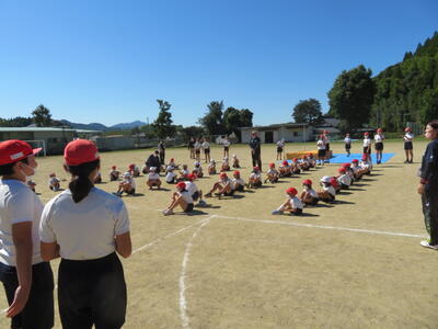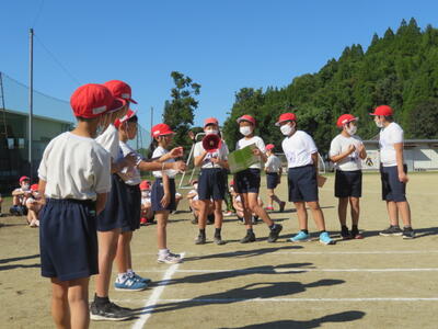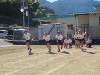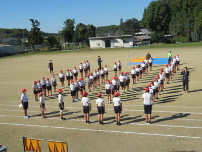 雲ひとつない秋晴れのもと、6年生の企画・運営による「海東陸上祭」が行われました。全校児童で、体を動かす心地よさ、友達を応援する喜びを感じることができました。5・6年生は、宇城小体連陸上記録記録会に向けて意欲を高めるいいきっかけとなりました。