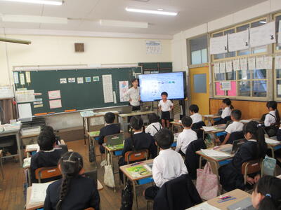 10月28日火曜日第2校時、理科の研究授業がありました。6年生がアルミニウムが塩酸に溶けたあとの物体の変化について学習していました。
