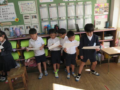4月に入学した子どもたちですが、話を聞く学習態度や発表の仕方など、かめがわ学習での学びの成果を見せてくれました。すばらしい1年生になりました!!