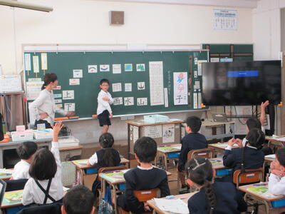 10月29日水曜日、校内研修の授業研究で1-1の国語の授業がありました。