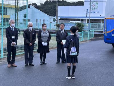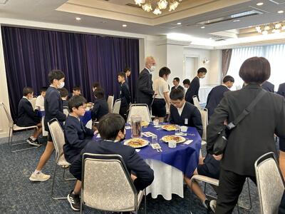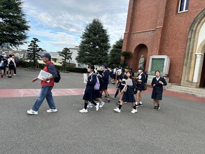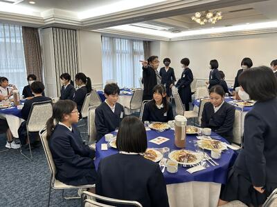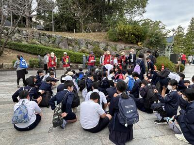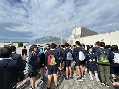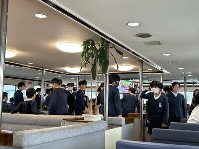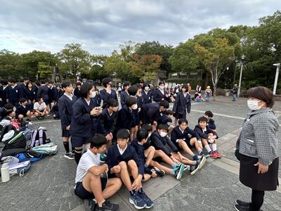 さあ、修学旅行のスタート。お見送りもありがとうございました。長崎市に入り、午前中平和学習を行い、ただいまからお昼ごはんです。
