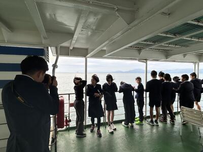 御所浦へ行くのが初めての児童も多く見られました。館内の見学では恐竜について、御所浦クルーズでは化石の発見された地層から分かる御所浦の歴史について、多くの学びがありました。