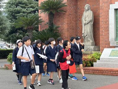 午後は原爆資料館を見学し、平和ガイドさんとともにフィールドワーク。長崎市内を歩き、原爆の脅威と平和の尊さを学びました。