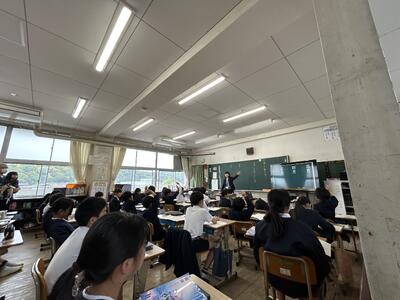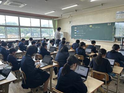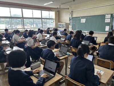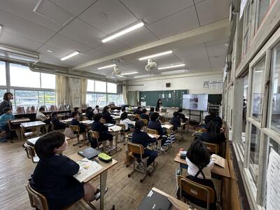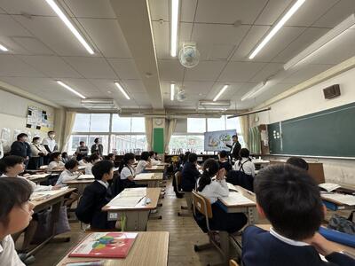 2月19日木曜日、今日は本校にたくさんの先生方がいらっしゃいました。今年1年のリーディングDXスクール事業指定校としての校内研修の集大成、公開授業を行いました。1年生と6年生の学びを見ていただきました。