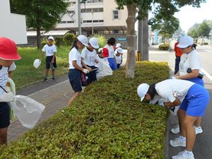あっという間に夏休みも10日過ぎ、8月に突入しました。今日は「すくすく稜南会夏休みボランティア」を実施。稜南中学校区の幼稚園・保育園・小学校・中学校の子どもたちと職員で地域の清掃活動を行いました。中学生が小学生に声をかけて活動をリードしたり、小学生は木の中に挟まったごみを拾ったりとそれぞれにできることを頑張りました。