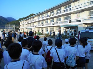 不審者避難訓練を実施しました。天草警察署から講師を招き、訓練を見られての感想や普段の生活で気を付けて欲しいことなどを子どもたちに話していただきました。