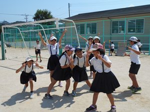 亀川小児童の体力をより高めるために、体育委員会が「NEW体力向上プロジェクト」を計画・運営しています。今日は長縄を実施。異学年が交流しながら、楽しく長縄を楽しみました。